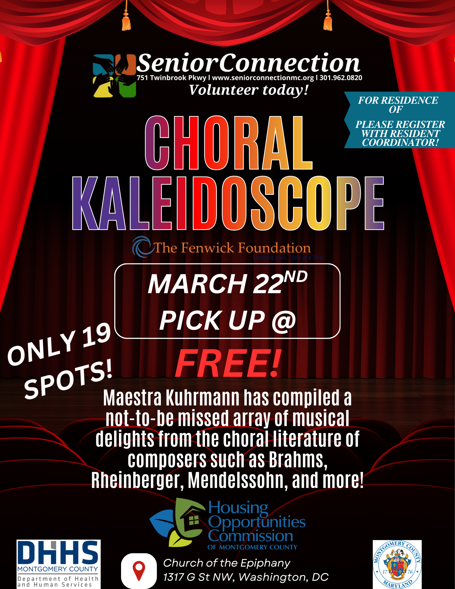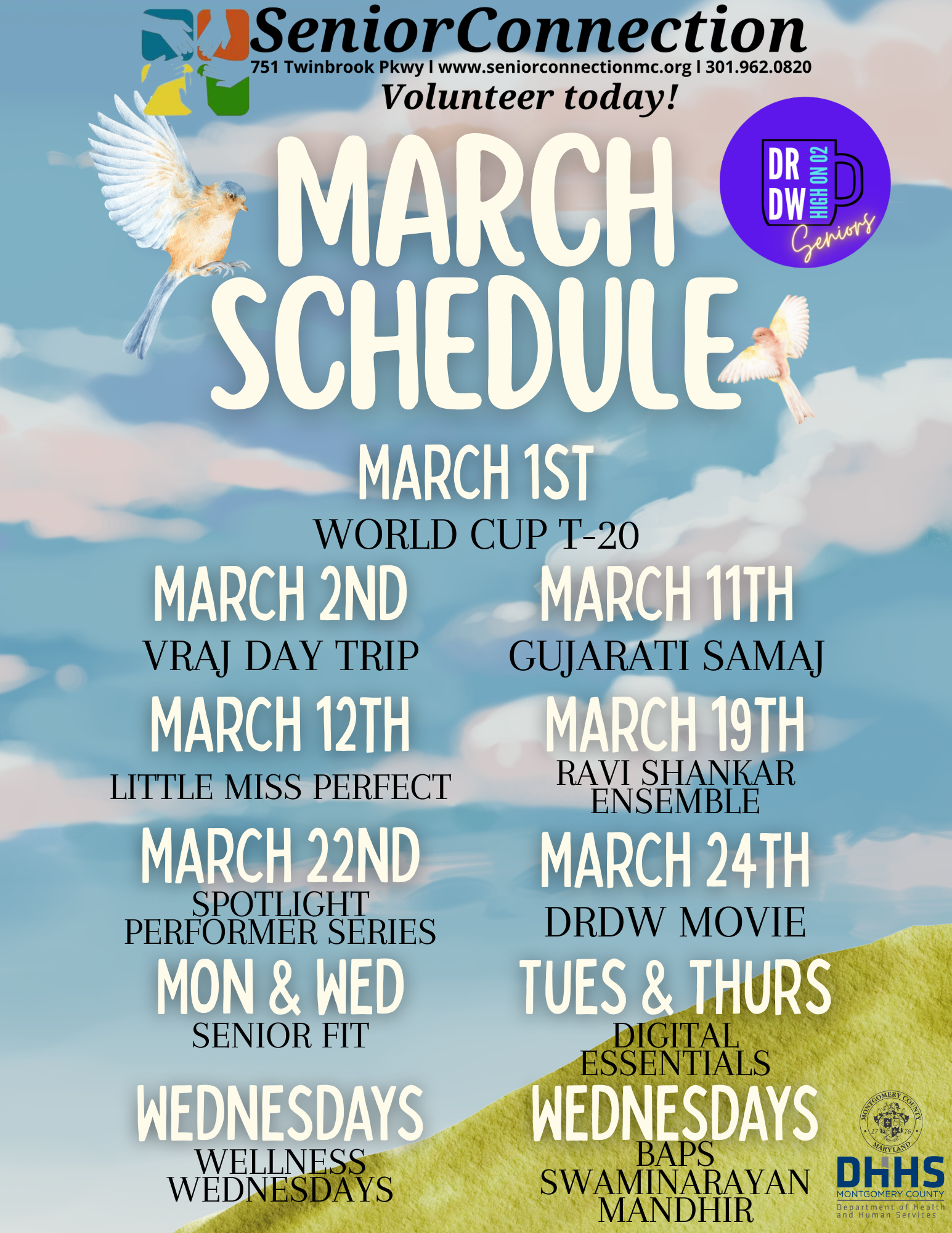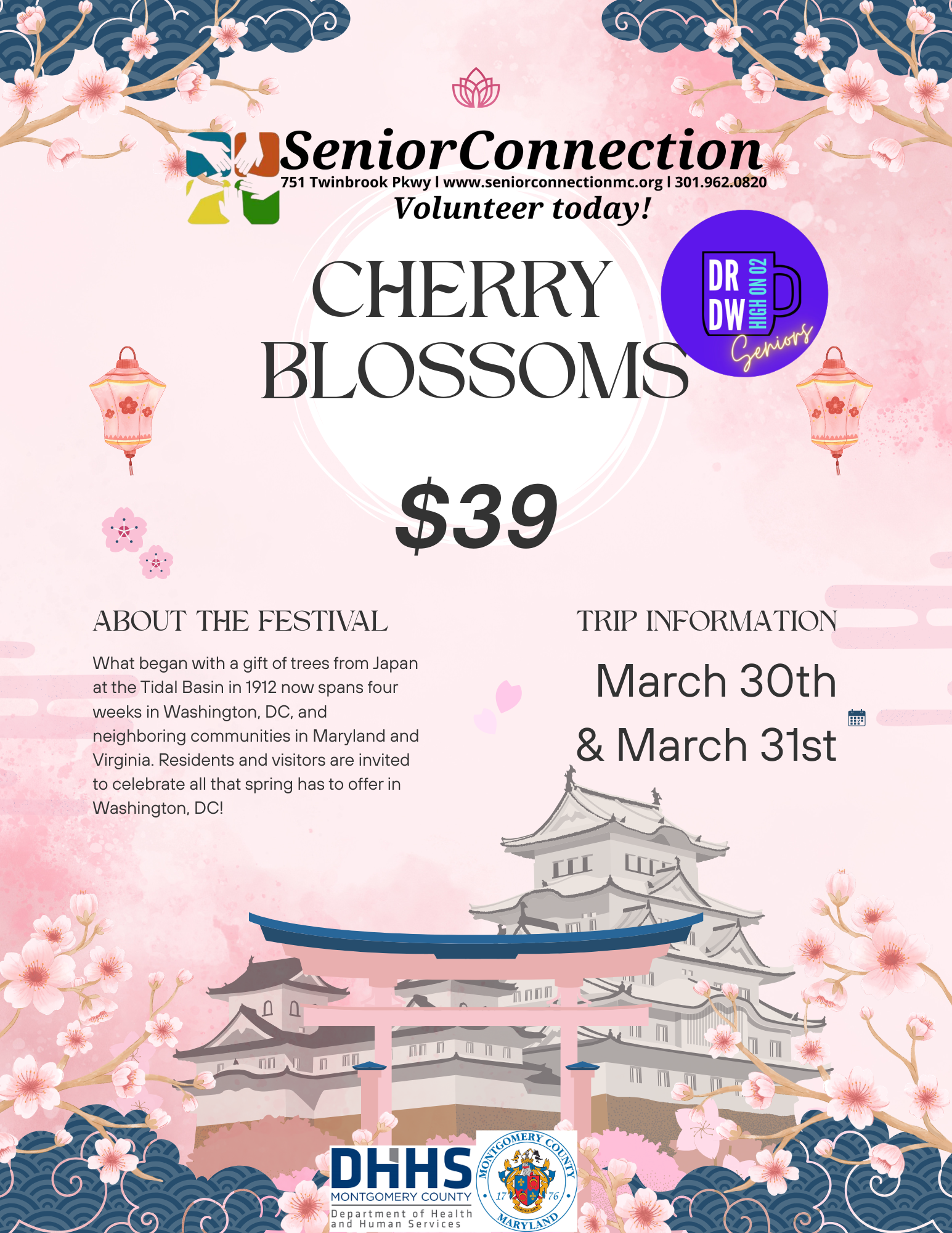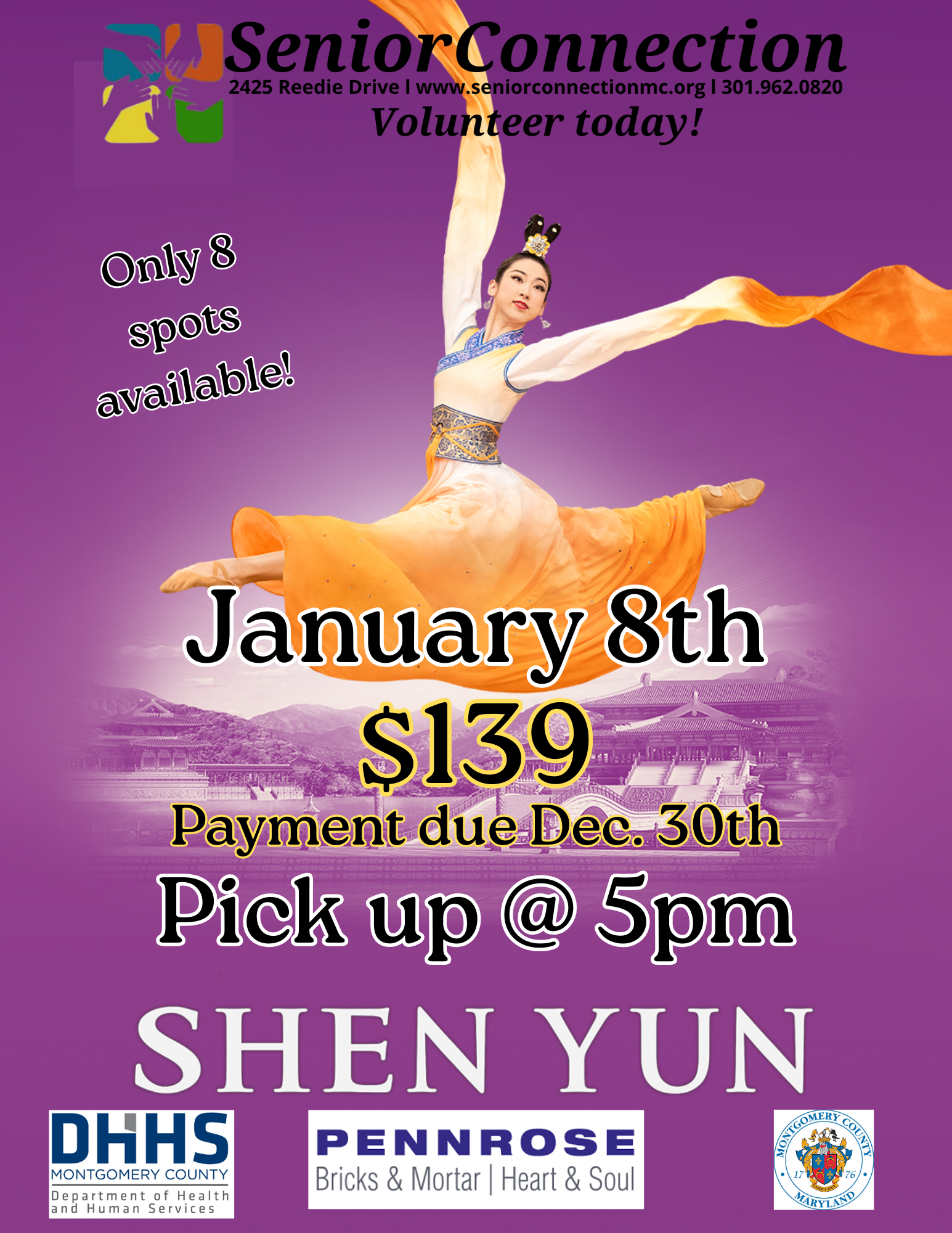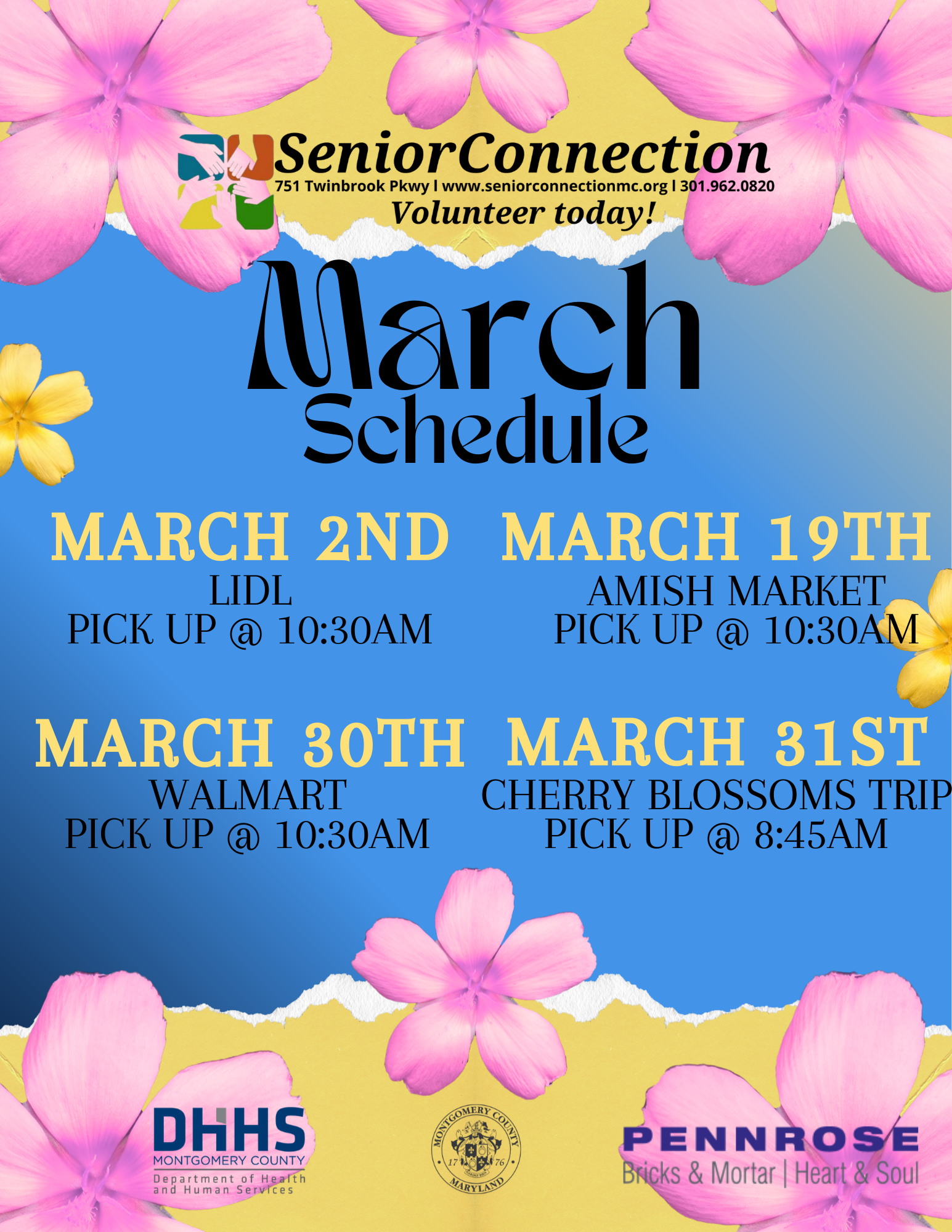 Senior Connection does not charge for all services and is funded in part by Montgomery County Department of Health and Human Services, Division of Aging and Disability; private foundations; faith communities; corporations; and individuals, value and support our efforts.